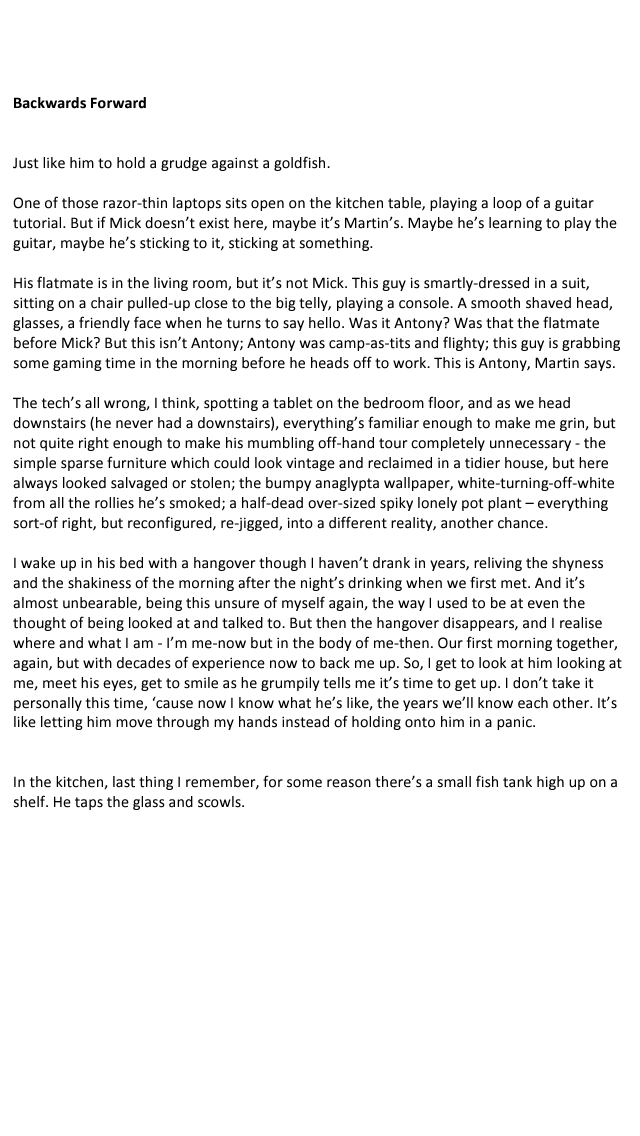 Performed at Spiral, a new writing showcase at Bread & Roses in Clapham, organised by Free Rayne Artists theatre company.